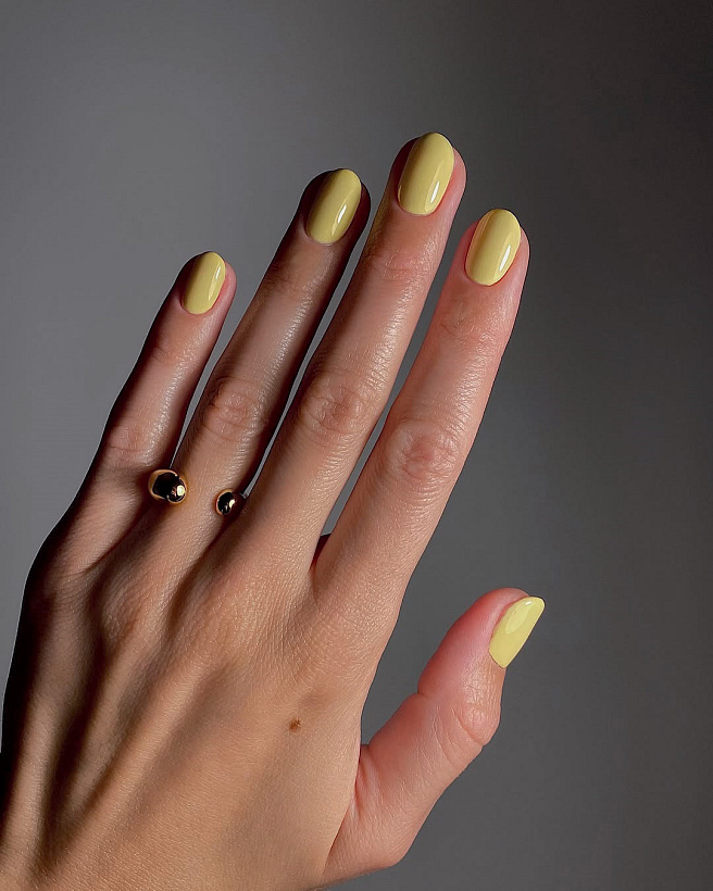 Téhle světlounce žluté máslovky se pořád nemůžeme nasytit a na nehtech vypadá překvapivě dobře. Hotovo bude za chvilku a v kombinaci s minimalistickým zlatým šperkem nemá chybu.