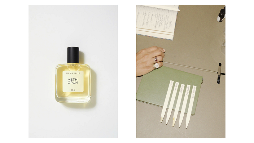 „Některé z mých nejranějších čichových vzpomínek jsou z Gambie, “ říká Maya. „Země, půda a kámen po dešti. Farmáři vypalující suchou trávu podél cest. Kouř kadidla, koření, káva a teplé, sladké kondenzované mléko. “ To vše skrývá Aethi Opum, její nová opojná parfémová voda, kterou u nás prodává Myskino.