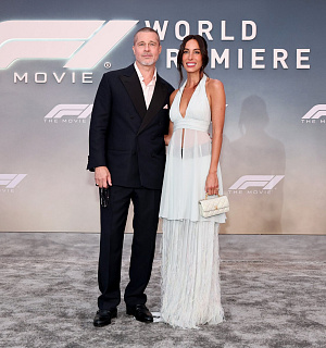 Brad Pitt, který ve filmu hraje bývalého závodníka Formule 1 vracejícího se po téměř třiceti letech zpět na trať, dorazil v tmavě modrém obleku, bílou košilí, saténovým kapesníčkem a výrazným prstenem. Ines de Ramon zvolila lehký dvoudílný komplet s halter výstřihem a průsvitným středem. Dlouhá sukně byla zdobena pírky a celý look doplnila bílou kabelkou Chanel. Lehký, letní a přitom luxusní outfit skvěle kontrastoval s Pittovou uhlazenou klasikou.