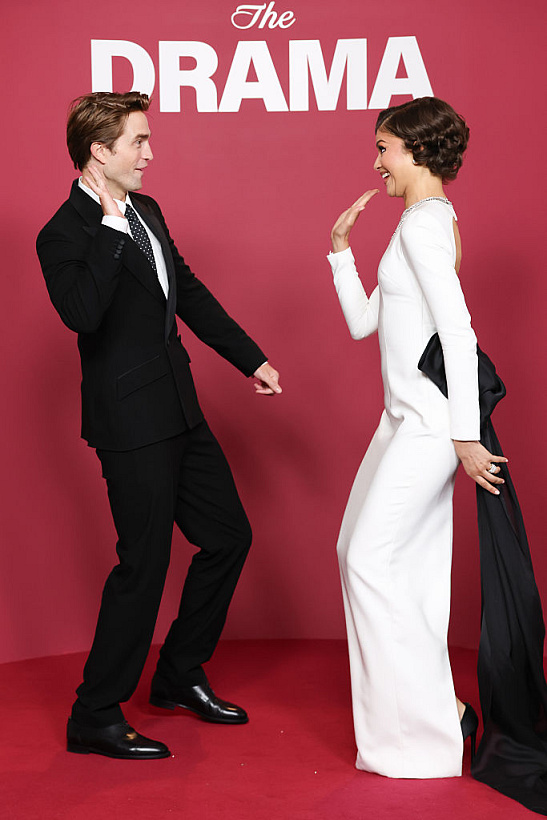 Na červený koberec však Zendayu nedoprovodil Tom Holland, ale její herecký kolega Robert Pattinson. Ten měl na sobě černý oblek na míru, k němuž si oblékl bílou košili, kravatu a černé boty.