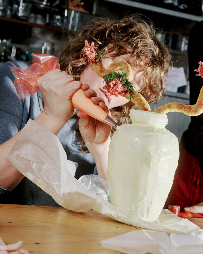 Františka: Anča je jednoznačně náš šéfkuchař. Vymýšlí kombinace chutí a často přichází s nečekaným. Natálka je zase výborná v pečení a já zastávám spíš scénografickou složku. V té se nicméně všechny velice dobře doplňujeme. Naše instalace vymýšlíme společně.