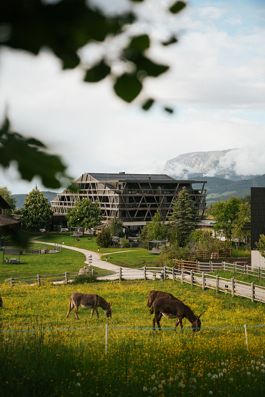 Tato čtyřhvězdičková oáza relaxace v oblasti Nova Ponente nabízí dovolenou bez jakéhokoliv ruchu a stresu. Obklopuje ji totiž pět hektarů lesů a luk. Jakmile vystoupíte z auta, pochopíte, že nastal čas, aby se vaše tělo i duše naladily na okolní přírodu. Příroda tu totiž hraje hlavní roli. Srdcem filozofie je holistický koncept, který je založen na čtyřech pilířích: více lokálního, více přírody, více všímavosti a více designu. Hotel zaujme přímočarým alpským designem a stylovými černými akcenty. Vizuálním lákadlem je vnější fasáda, která je inspirována památkově chráněnou stodolou bývalého statku. Ubytovat se můžete v některém z moderních pokojů v hlavní budově, jejichž interiéry jsou uklidňující a záměrně decentní. K dispozici jsou také apartmá s výhledem do krajiny a exkluzivní chalety se spoustou prostoru, světla a prozlehlou dřevěnou terasou, která je ideálním místem k pozorování zapadajícího slunce nad horami. Pokud si chcete dopřát něco skutečně výjimečného, rezervujte si některý ze tří dvoupatrových futuristicky vypadajících eco loftů s privátními saunami a božskými výhledy.