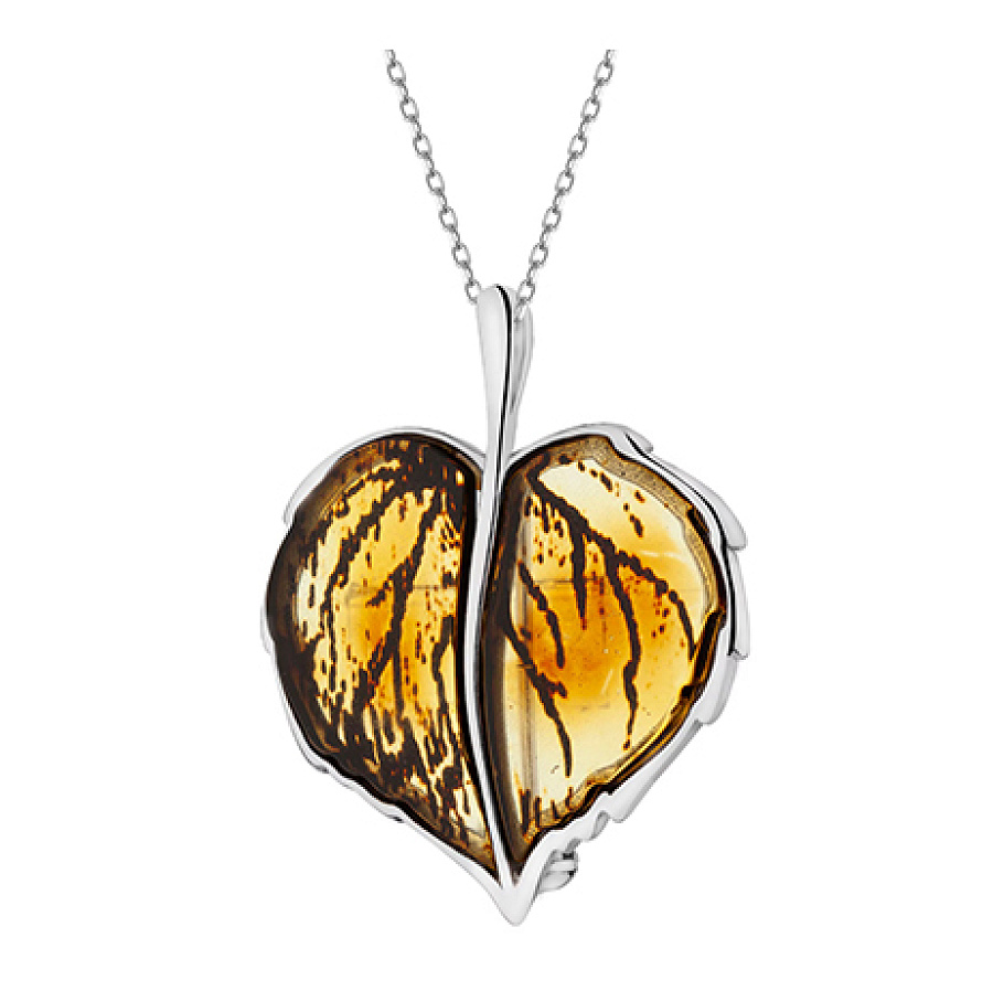 Brož – přívěsek s jantarem – list, Apart, 4 190 Kč