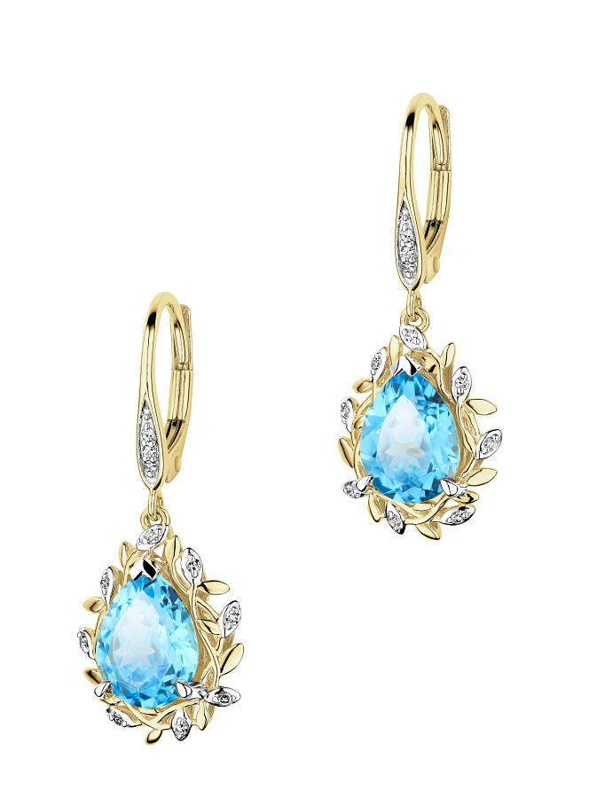 Zlaté náušnice s diamanty a topazy, 21 790 Kč