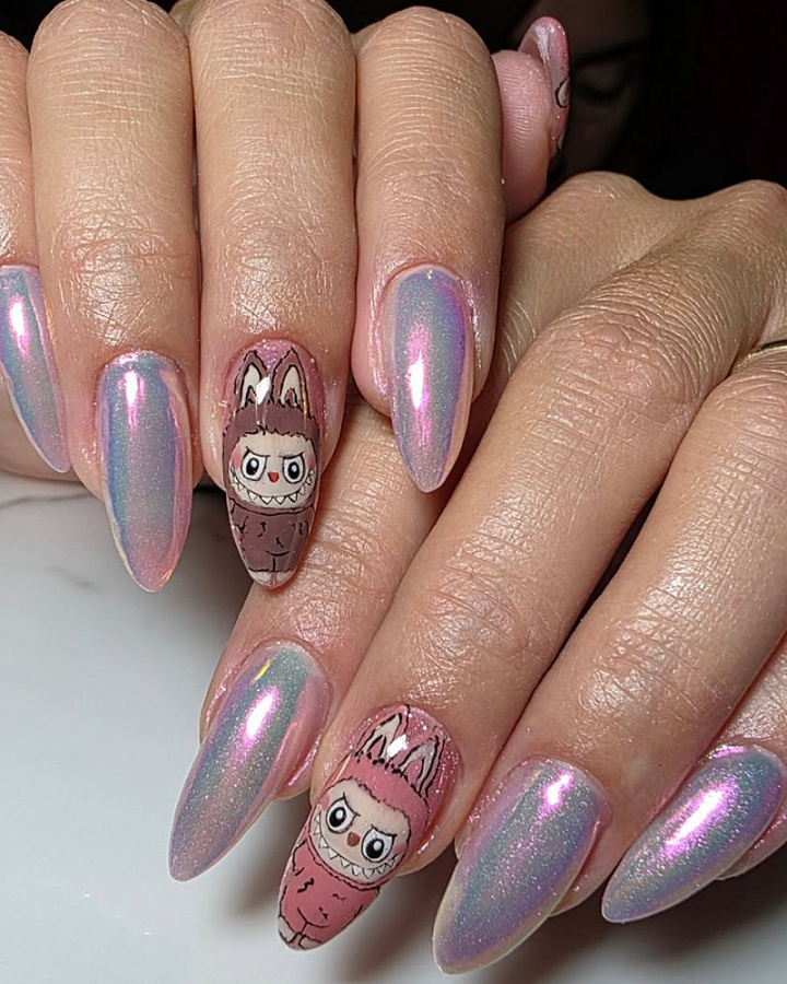 Chromový lesk a roztomilé postavičky v manikúře prostě fungují.