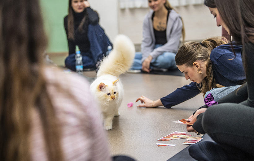 „Začínali jsme se štěňaty, protože to byl přirozený první krok. Lidé si je okamžitě zamilovali a lekce měly krásnou energii. Postupně se nás ale klienti začali ptát, jestli bychom nezkusili i kočky. A dávalo nám to smysl. Kočky působí jinak než psi – jsou klidnější, víc reagují na atmosféru v místnosti a často si samy vyberou, ke komu přijdou. Ten kontakt je pak hodně silný. Viděli jsme, že lidé po lekcích s kočkami odcházejí opravdu zklidnění. Proto jsme se rozhodli je zařadit natrvalo, "říká Dvořáková.
