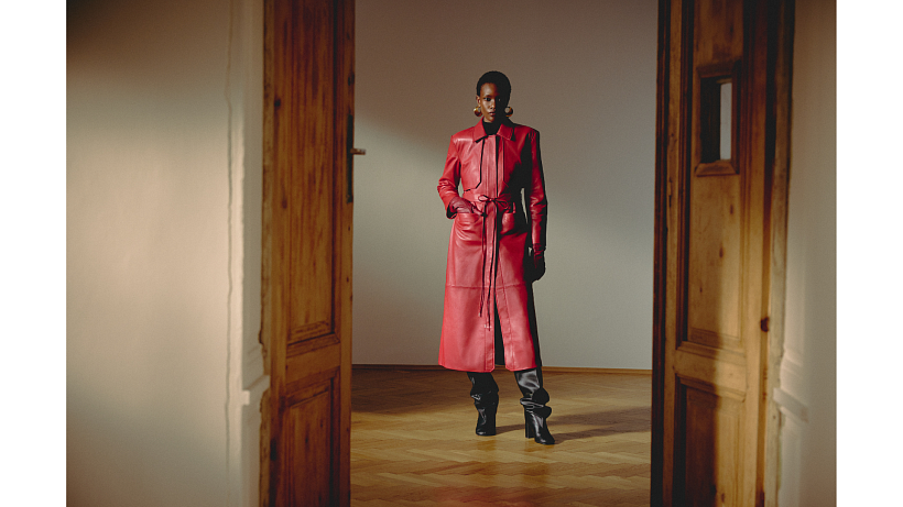 Emociálním kompasem kolekce se stala legendární herečka Charlotte Rampling. Její rafinovaný chlad, surová elegance a vnitřní magnetismus se promítly do barevné palety, které dominuje hluboká červená, lilek (aubergine), teplá hnědá a nadčasová černá.